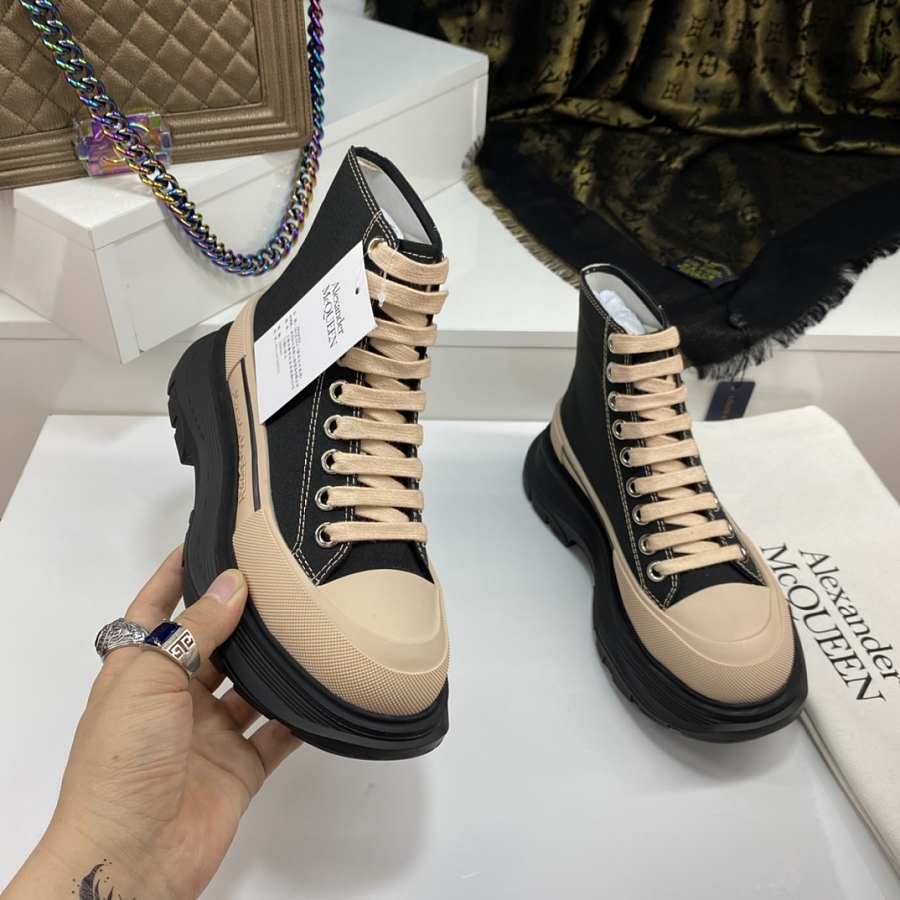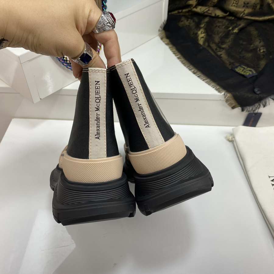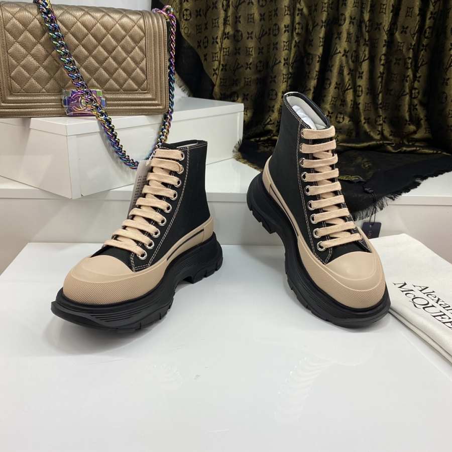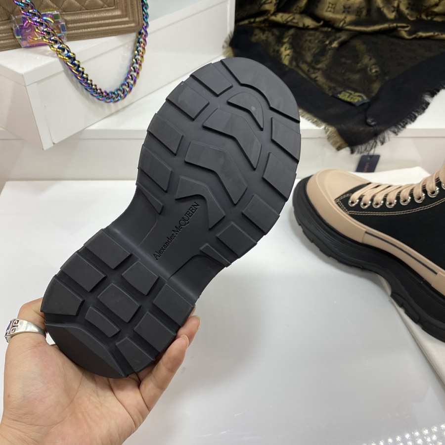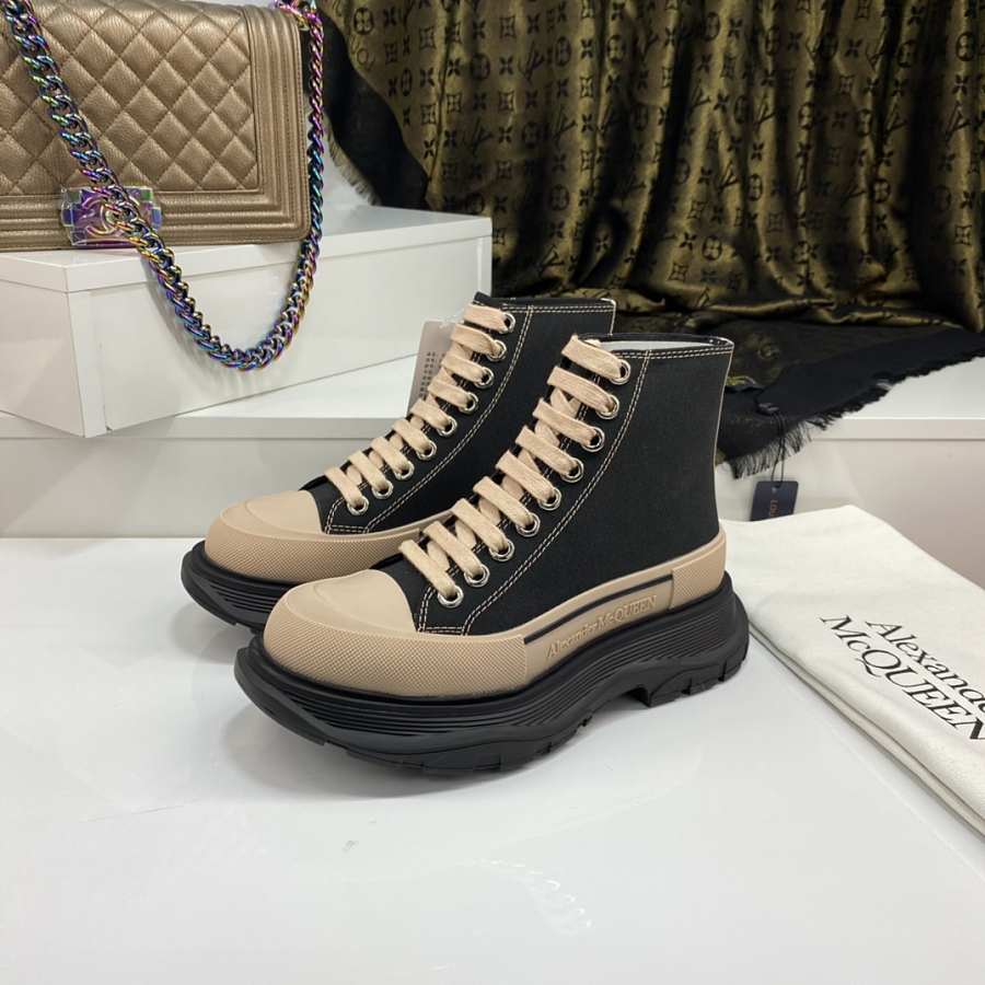Alexander McQueen Tread Slick Lace Up Boot Black Beige