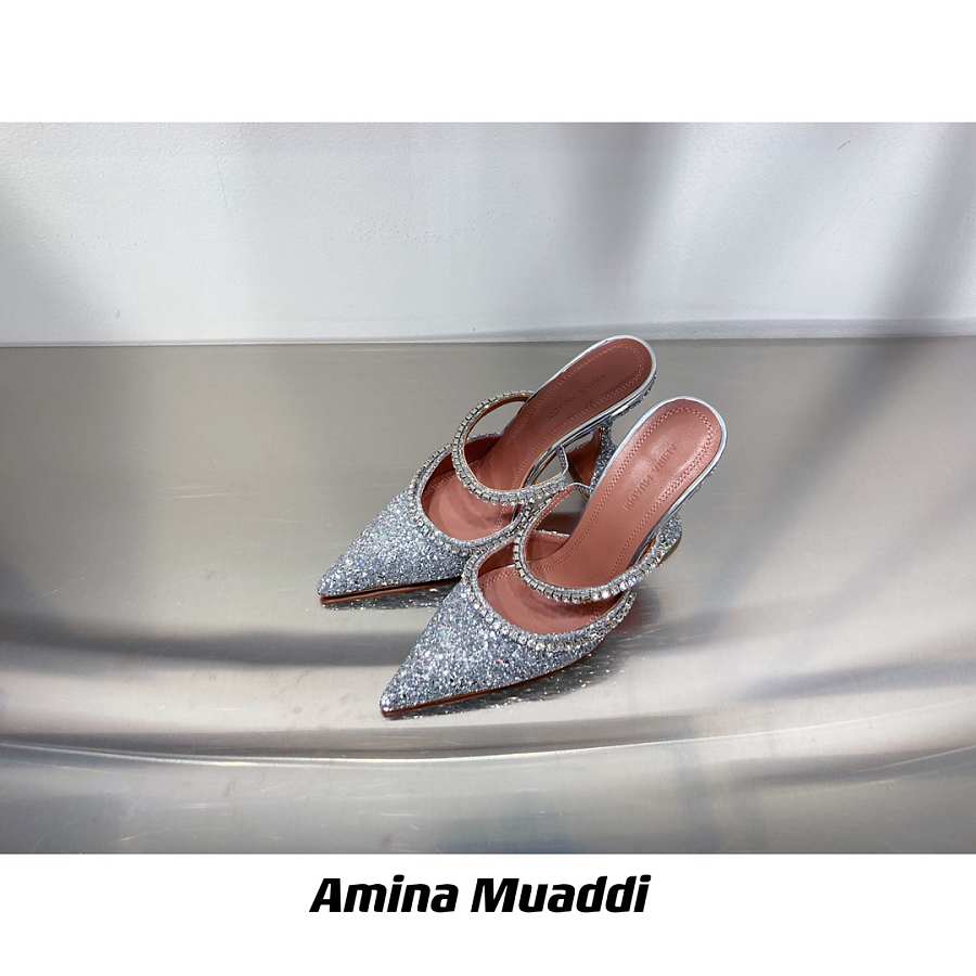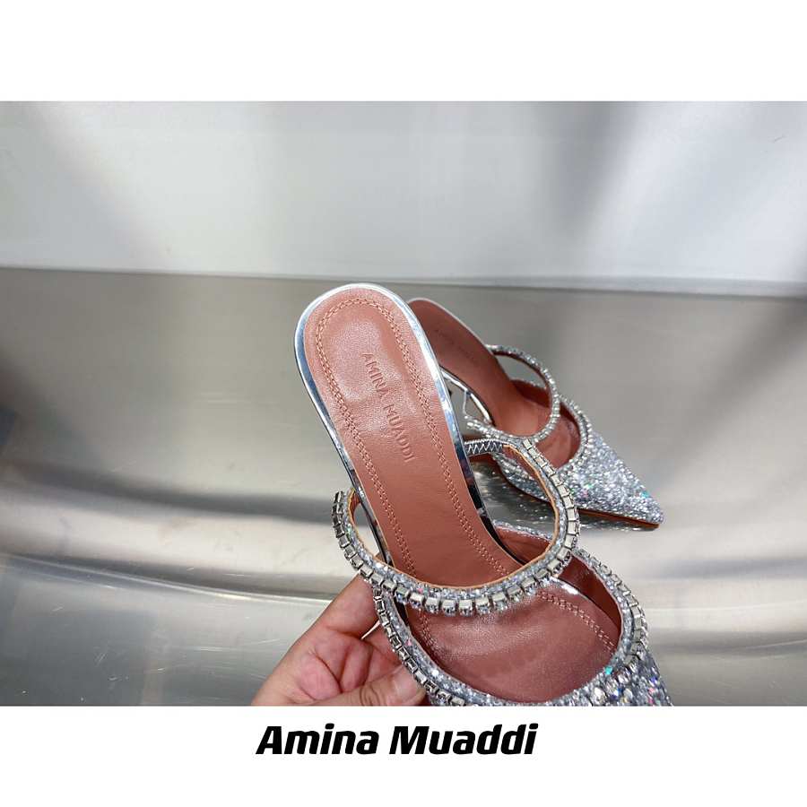 AMINA MUADDI Gilda White Crystal Slide Sandals