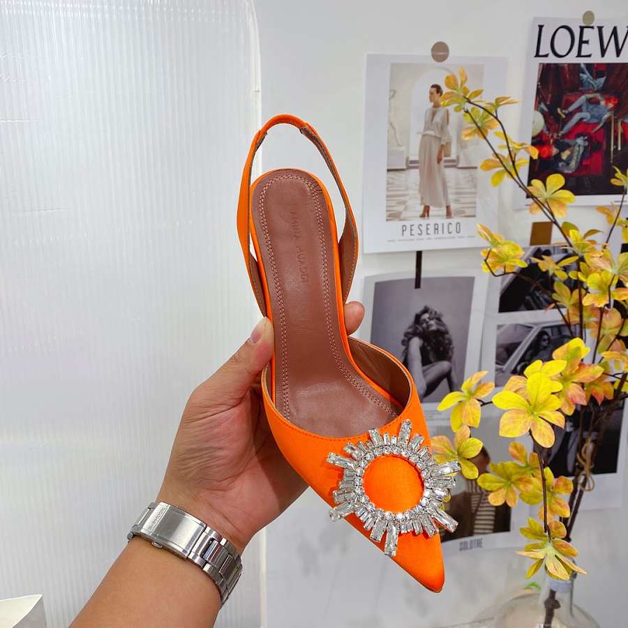AMINA MUADDI High Orange satin pumps
