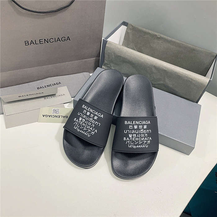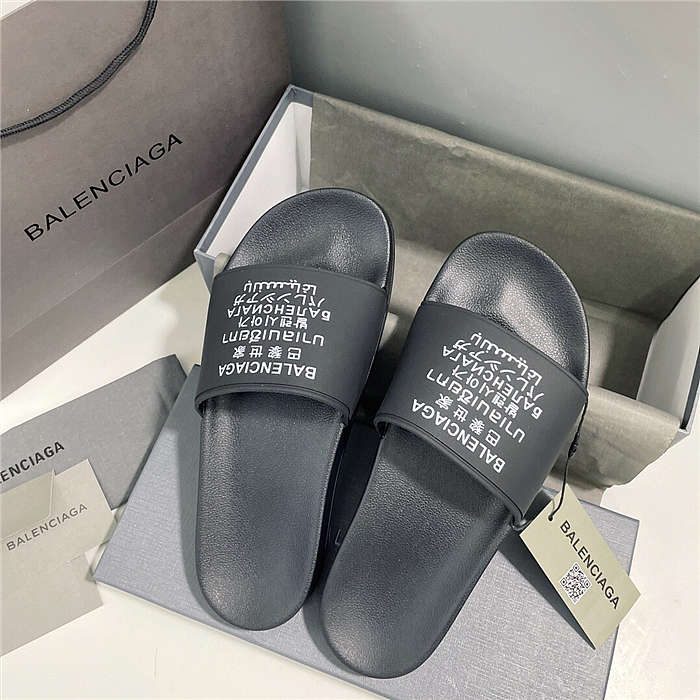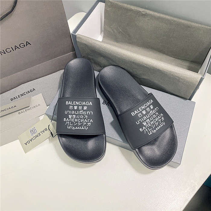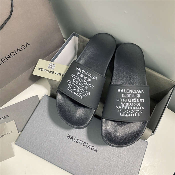 BALENCIAGA Black Word Pool Slides
