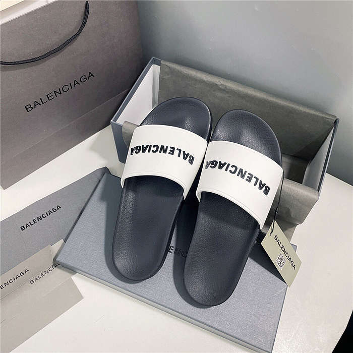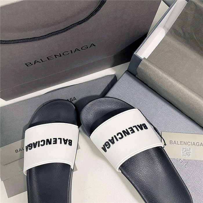 BALENCIAGA White Logo Pool Slides 1