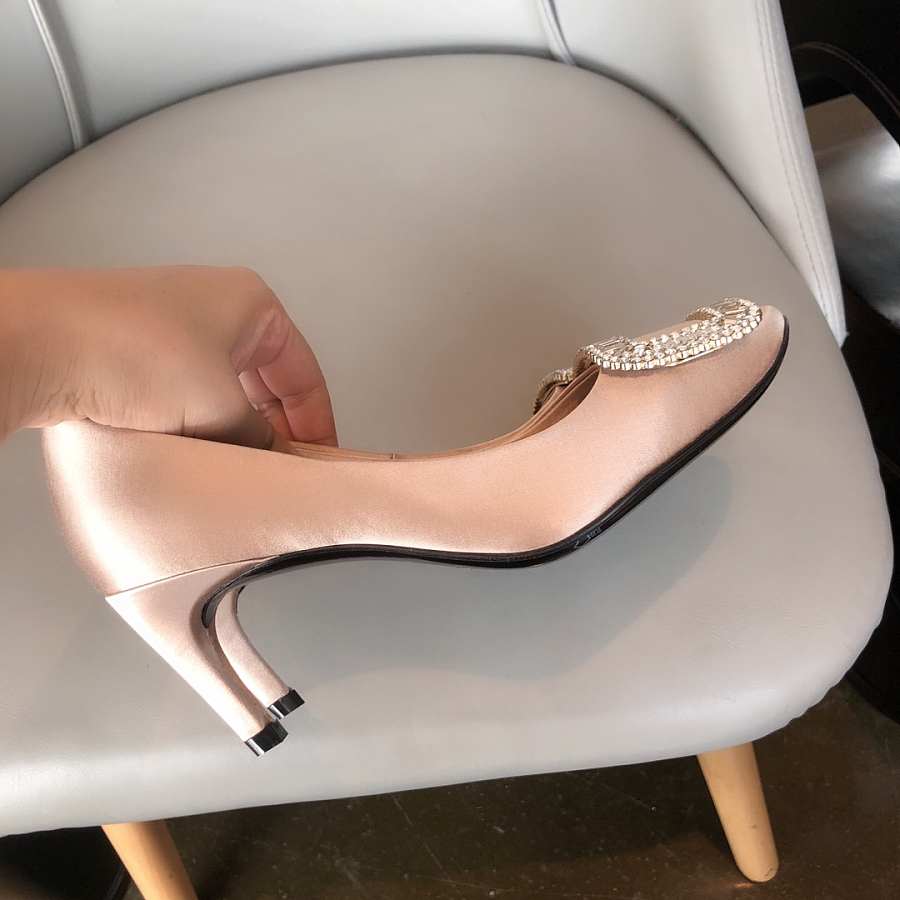 Belle Vivier Stone Buckle Pumps in Suede Beige