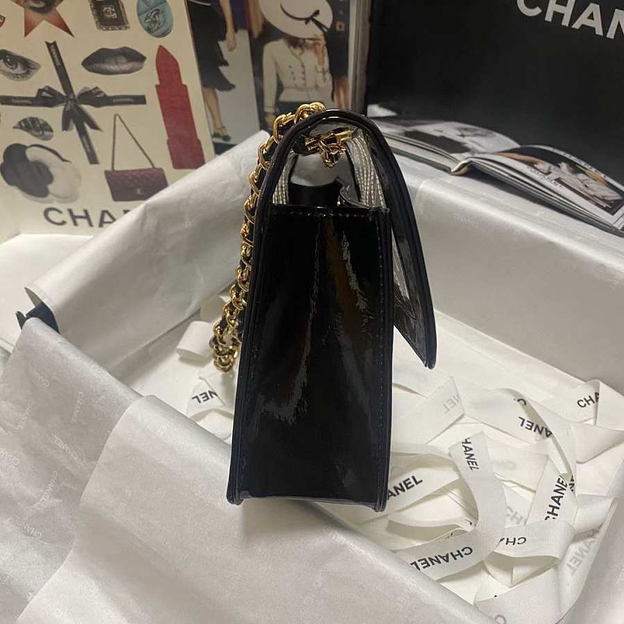 Chanel Clear and Black Quilted Vinyl and Patent Leather Maxi Classic Single Flap Bag Gold Hardware, 1994-1996