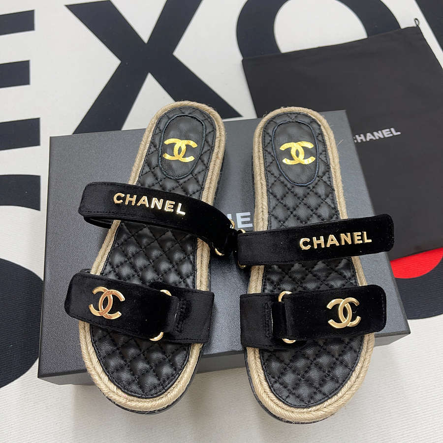 Chanel Velvet Velcro Sandal