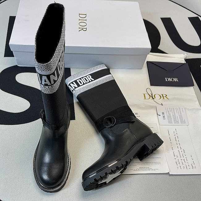 D-MAJOR BOOT Black and White Technical Fabric and Black Calfskin KCI611SCN_S52X