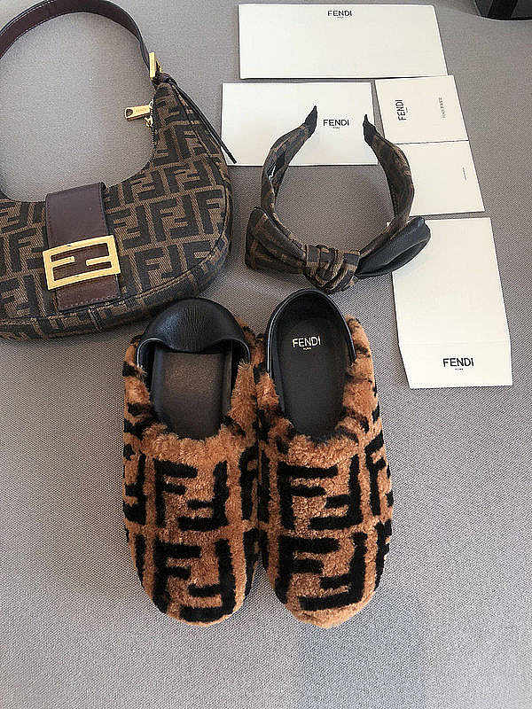 Fendi Brown sheepskin slippers - 8P8082AD7MF0R7R
