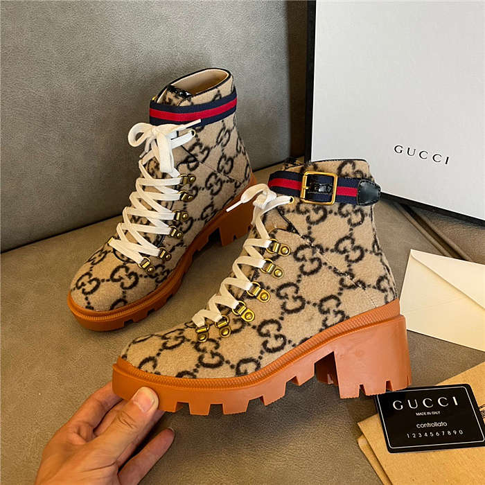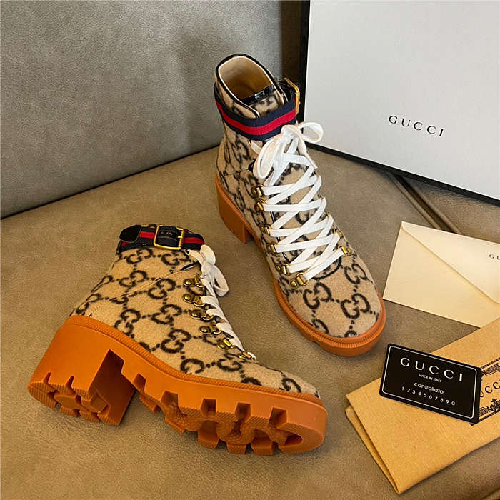 Gucci Beige Wool GG Ankle Boots