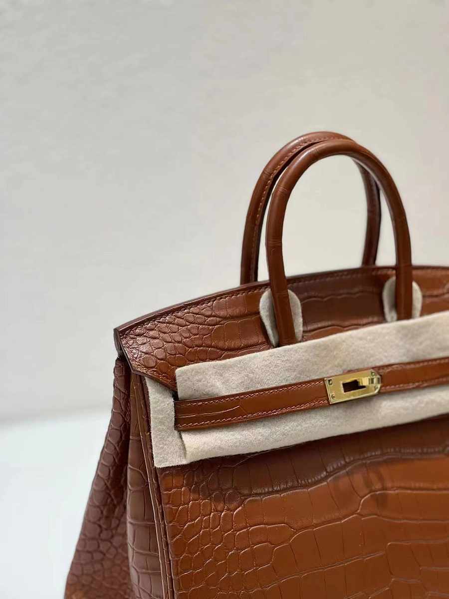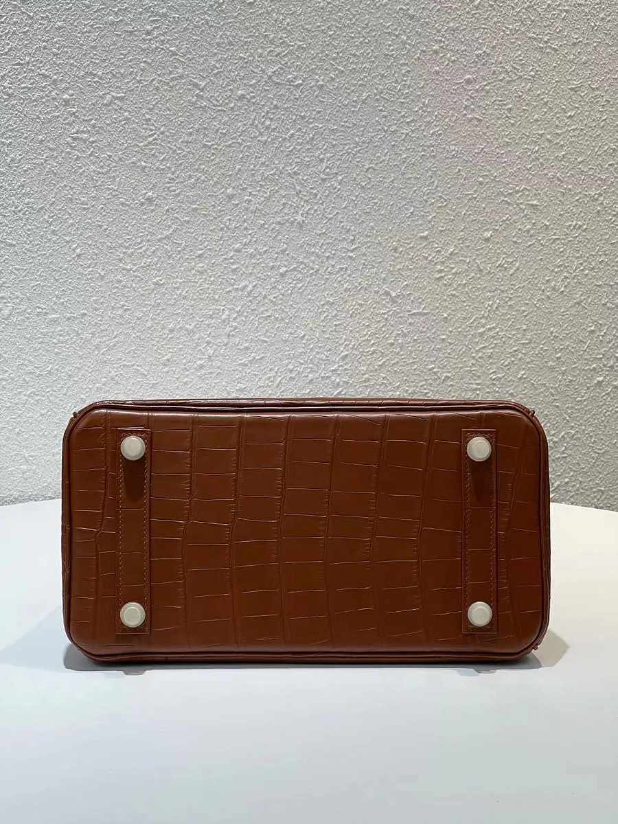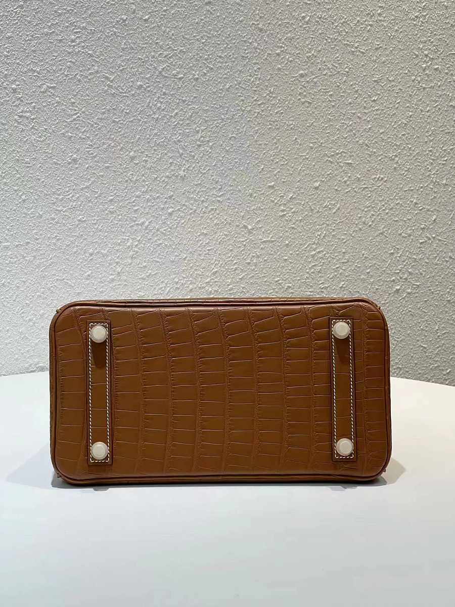 Hermes Birkin Jaune Bougeon Matte Porosus Croc Brown 30CM
