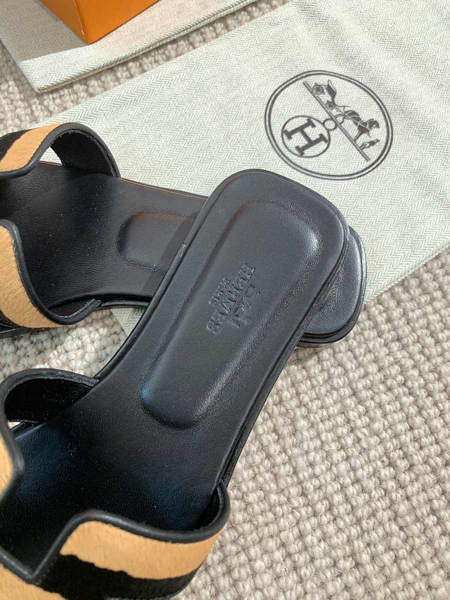 Hermes Oral Sandal Black Orange Leather