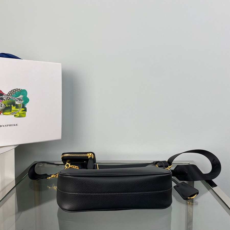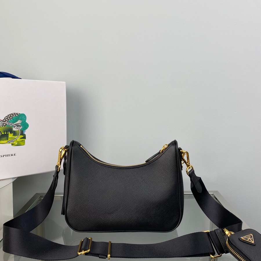 An iconic silhouette with sophisticated details that enhance the design: Prada transforms the classic shoulder bag, reinterpreting it in Saffiano leather with a cross-hatch motif that is a hallmark of the brand. The accessory is completed by a removable leather pouch and Re-Edition keychain, making the bag unique and functional.