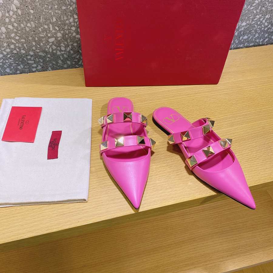 ROMAN STUD FLAT MULE IN CALFSKIN PINK