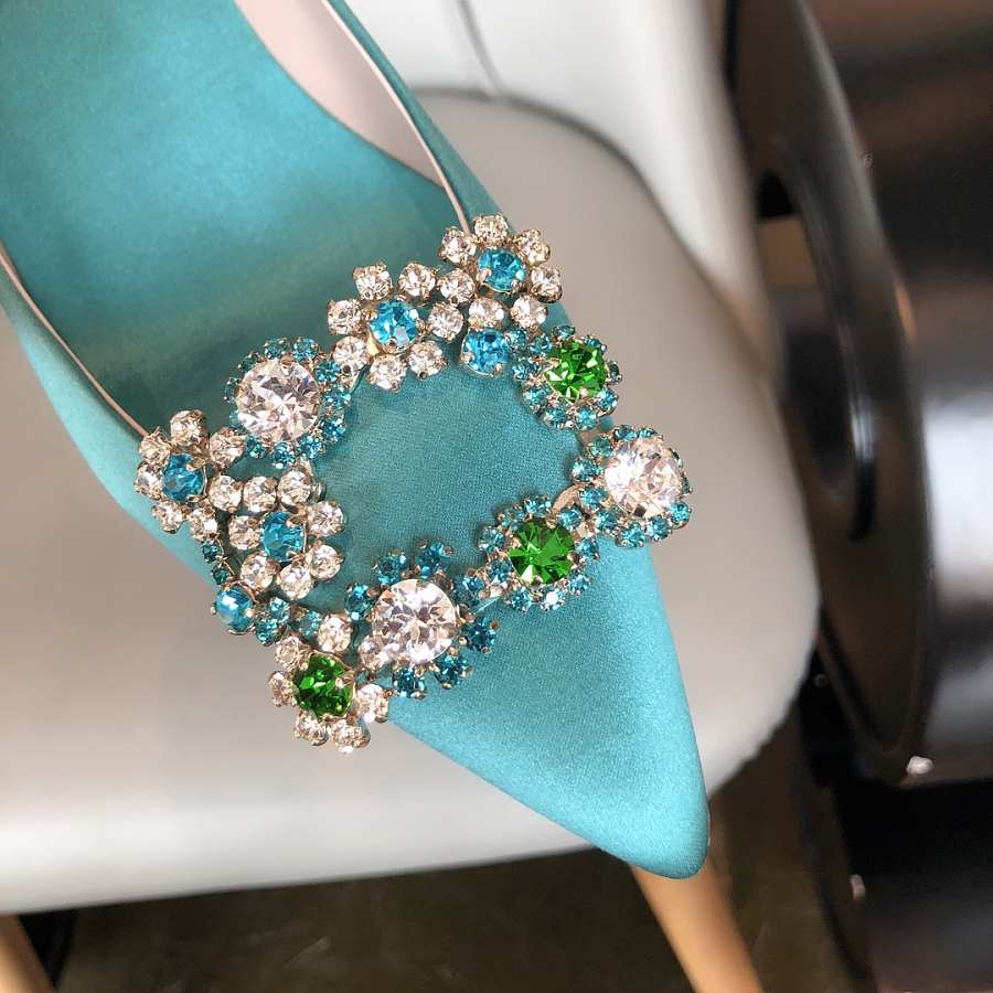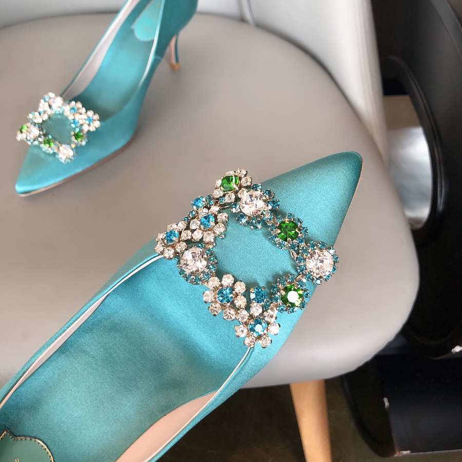 RV Bouquet Strass Pearl Buckle Pumps in Satin Blue